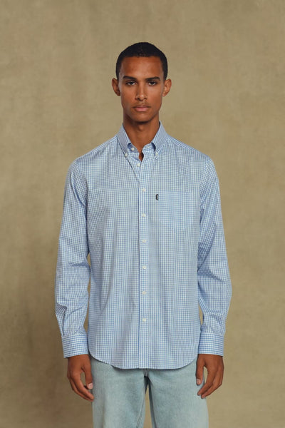 Abbate Aldo Poplin Pamuklu Comfort Fit Koyu Mavi Düğmeli Yaka Erkek Kareli Gömlek