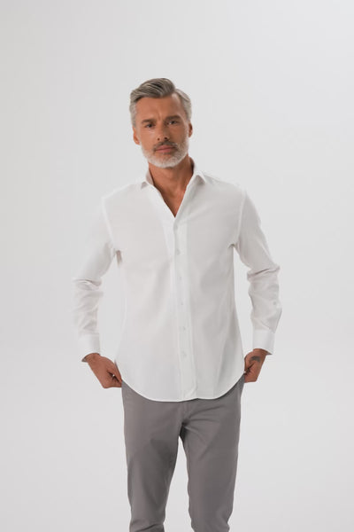 Abbate Antonio Armür Pamuklu Comfort Fit Beyaz Mostra Yaka Erkek Düz Gömlek