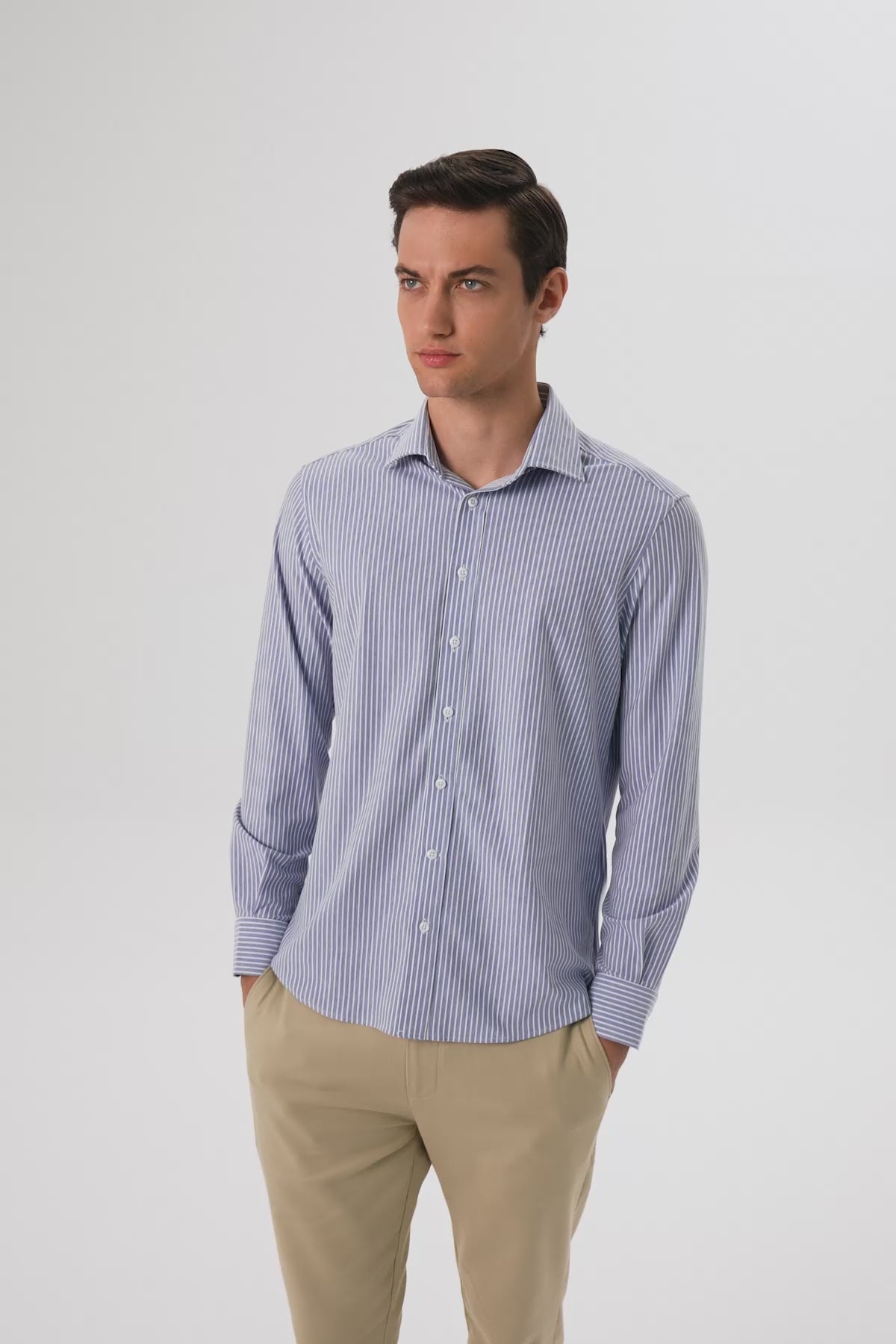 Pamuk ve polyester karışımlı kumaşıyla hem yumuşaklık hem de dayanıklılık sunan bu gömlek, uzun süreli kullanım için idealdir. Comfort fit kesimi sayesinde vücuda tam oturmadan rahat bir duruş sağlar. Klasik yaka detayı ise zamansız bir şıklık sunarak iş hayatından günlük stile kadar her ortama uygun kullanım oluşturur.