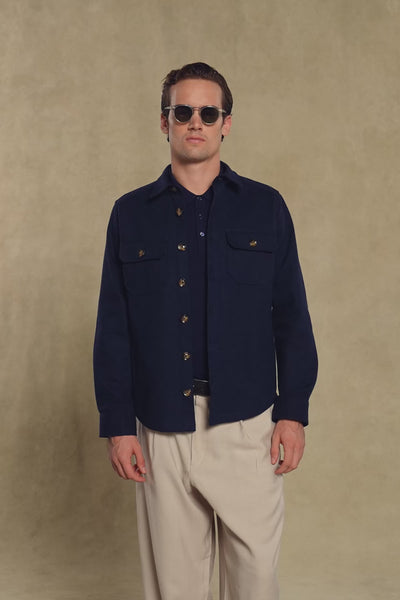 Abbate Fumo Flanel Pamuklu Overshirt Fit Lacivert Klasik Yaka Erkek Düz Gömlek Ceket