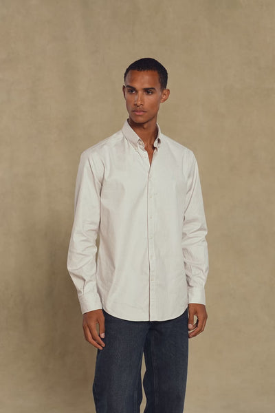 Abbate Luca Oxford Stretch Pamuk Karışımlı Comfort Fit Bej Düğmeli Yaka Erkek Çizgili Gömlek