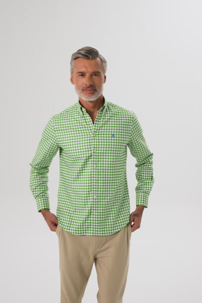 Abbate Lusso Twill Pamuklu Comfort Fit Yeşil Düğmeli Yaka Erkek Kareli Gömlek