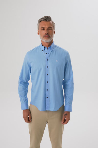Abbate Mario Poplin Pamuklu Comfort Fit Açık Mavi Düğmeli Yaka Erkek Düz Gömlek