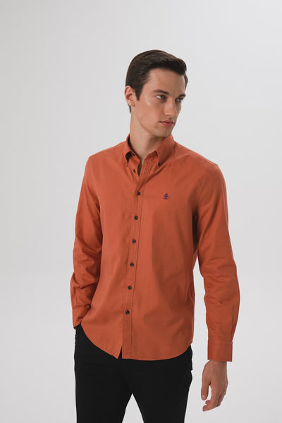 Abbate Mario Poplin Pamuklu Comfort Fit Kiremit Düğmeli Yaka Erkek Düz Gömlek