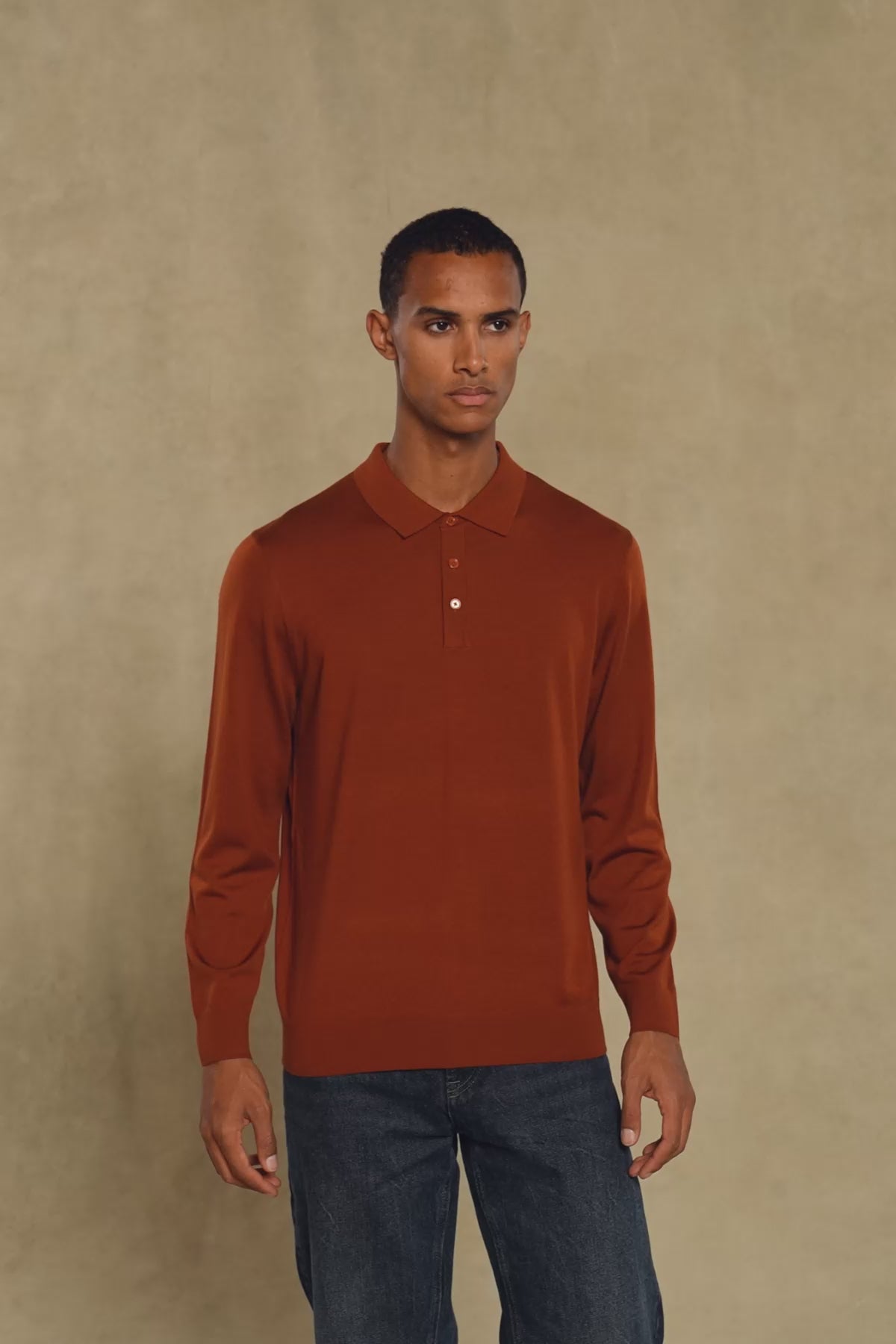 Abbate Nord Örme %100 Yün Modern Fit Kiremit Polo Yaka Erkek Düz Triko