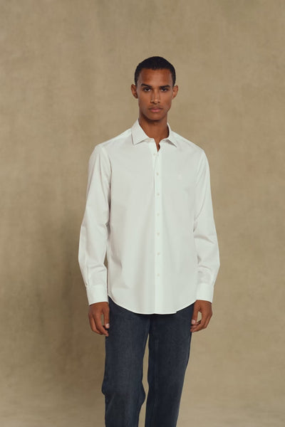 Abbate Piero Gabardin Pamuklu Comfort Fit Beyaz Klasik Yaka Erkek Düz Gömlek