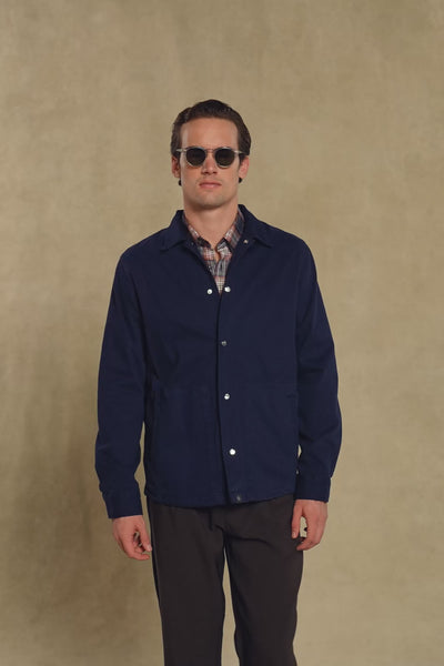 Abbate Renato Dokuma Polyamid Karışımlı Overshirt Fit Lacivert Klasik Yaka Erkek Düz Gömlek Ceket