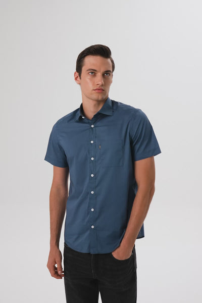Abbate Vento Poplin Pamuklu Comfort Fit Lacivert Klasik Yaka Erkek Düz Gömlek
