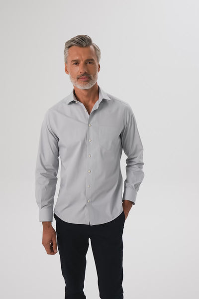 BB Club Lima Poplin Pamuk Polyester Regular Fit Açık Gri Klasik Yaka Erkek Düz Gömlek