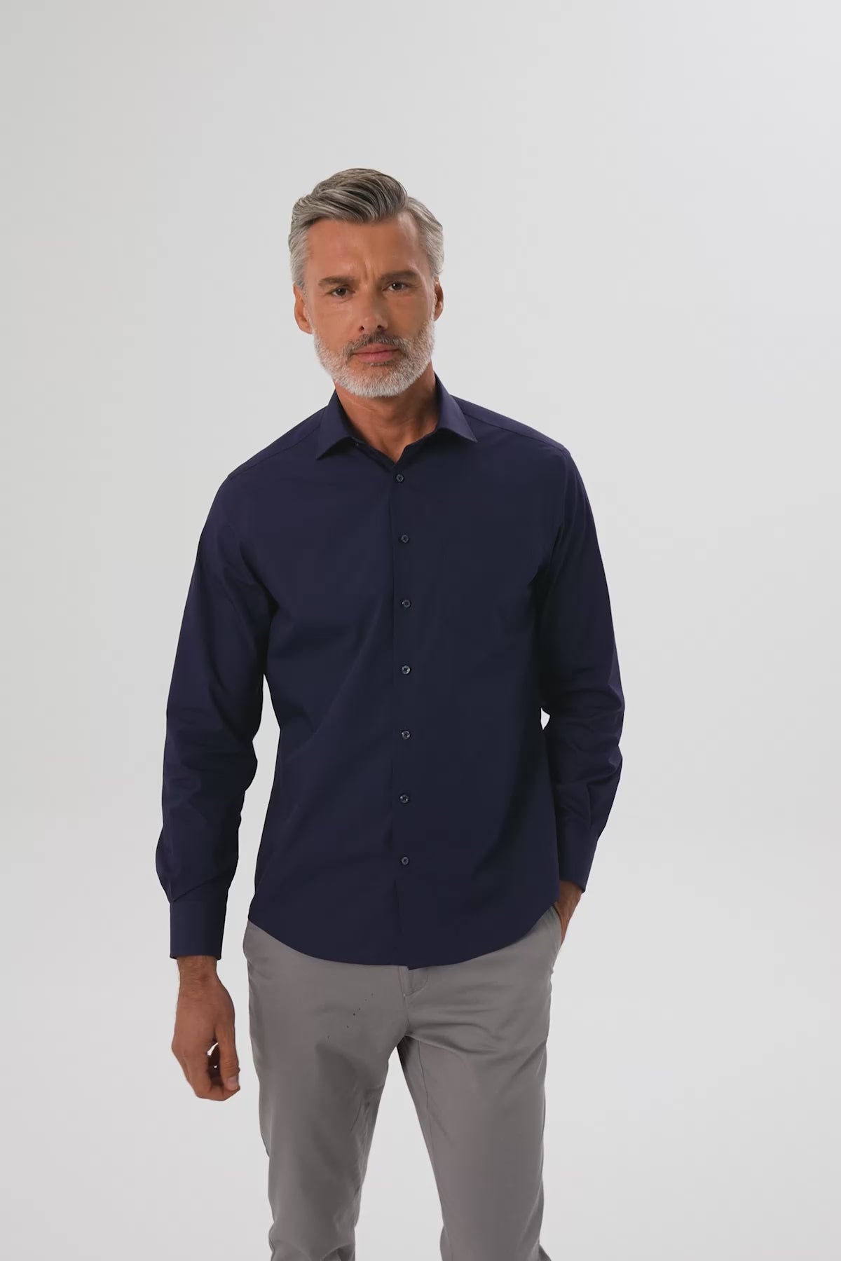 BB Club Lima Poplin Pamuk Polyester Regular Fit Lacivert Klasik Yaka Erkek Düz Gömlek