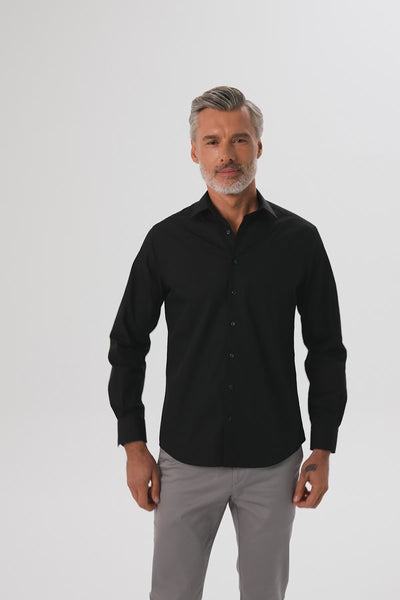 BB Club Lima Poplin Pamuk Polyester Regular Fit Siyah Klasik Yaka Erkek Düz Gömlek