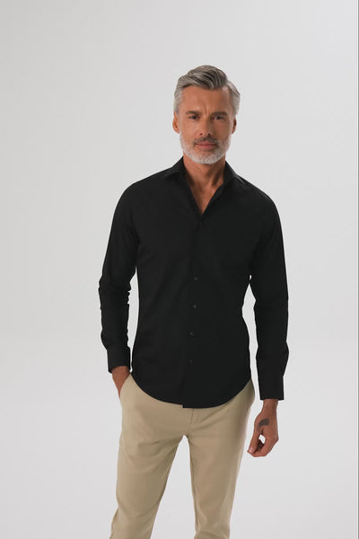 BB Club Oscar Poplin Pamuk Polyester Slim Fit Siyah Klasik Yaka Erkek Düz Gömlek