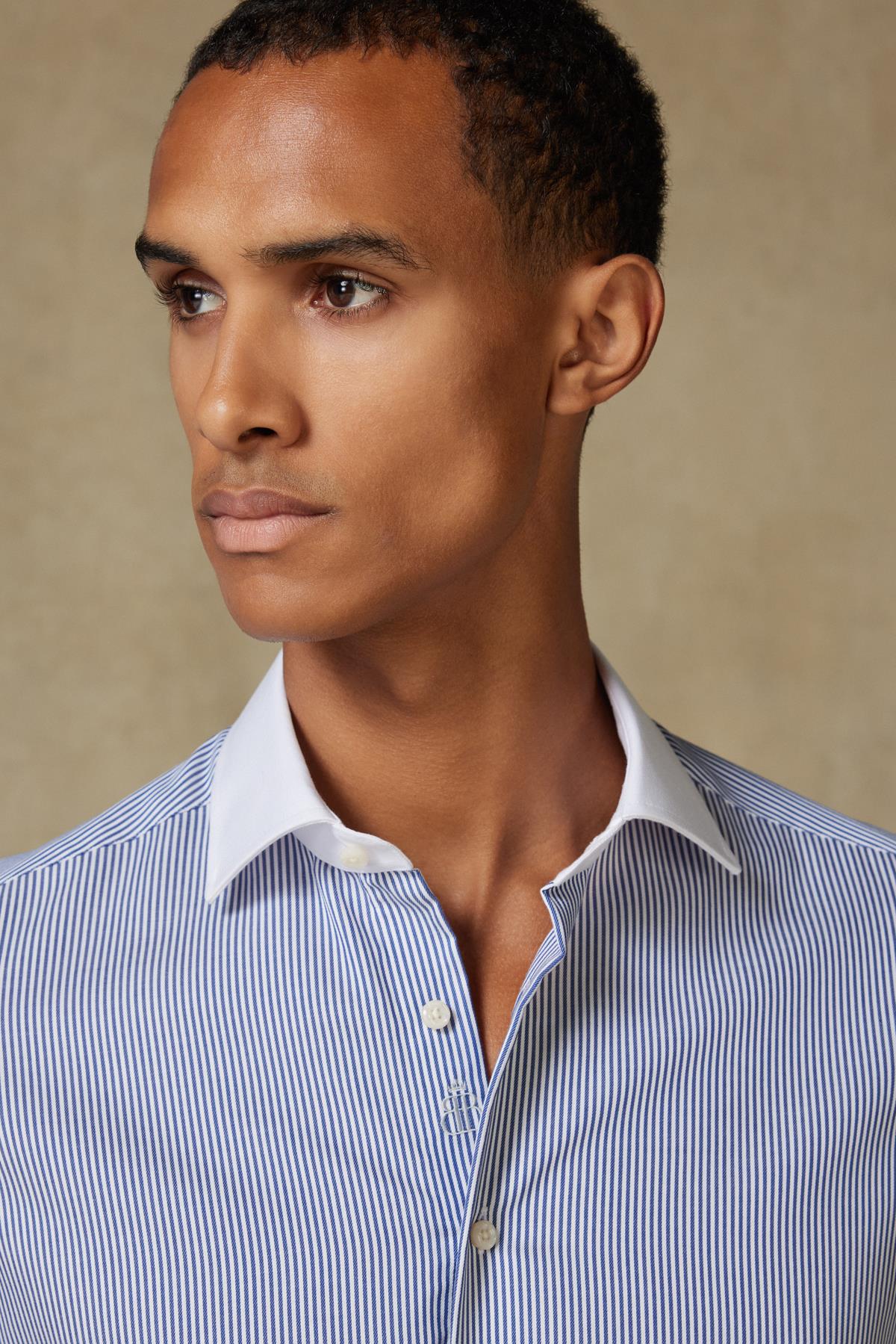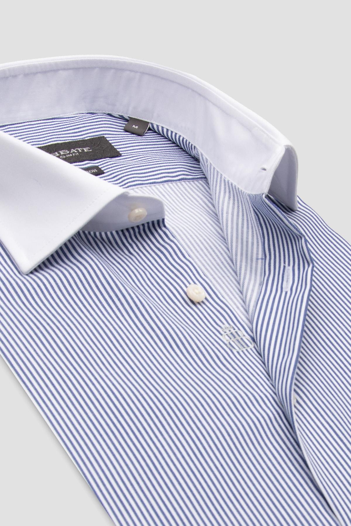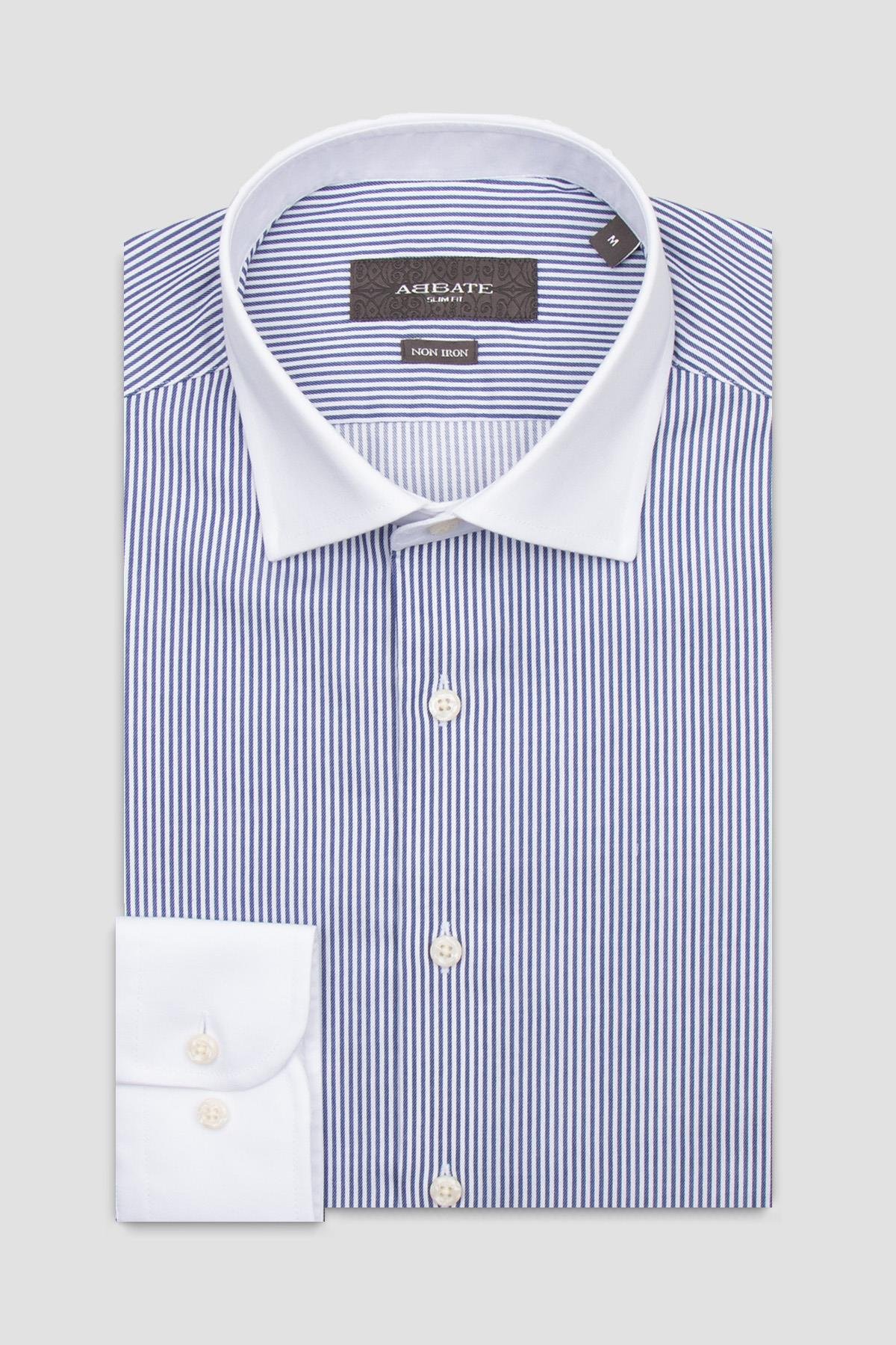 Abbate Grant Non Iron Twill Pamuklu Slim Fit Lacivert Klasik Yaka Erkek Çizgili Gömlek (AMSH10024-001)