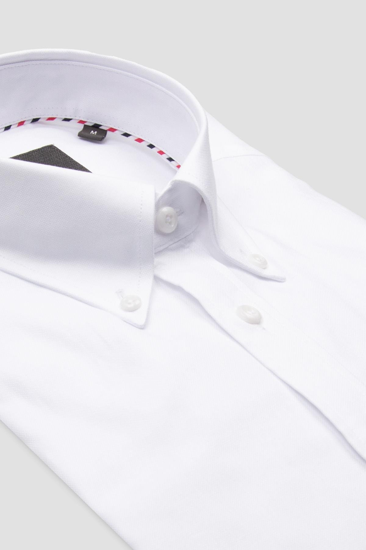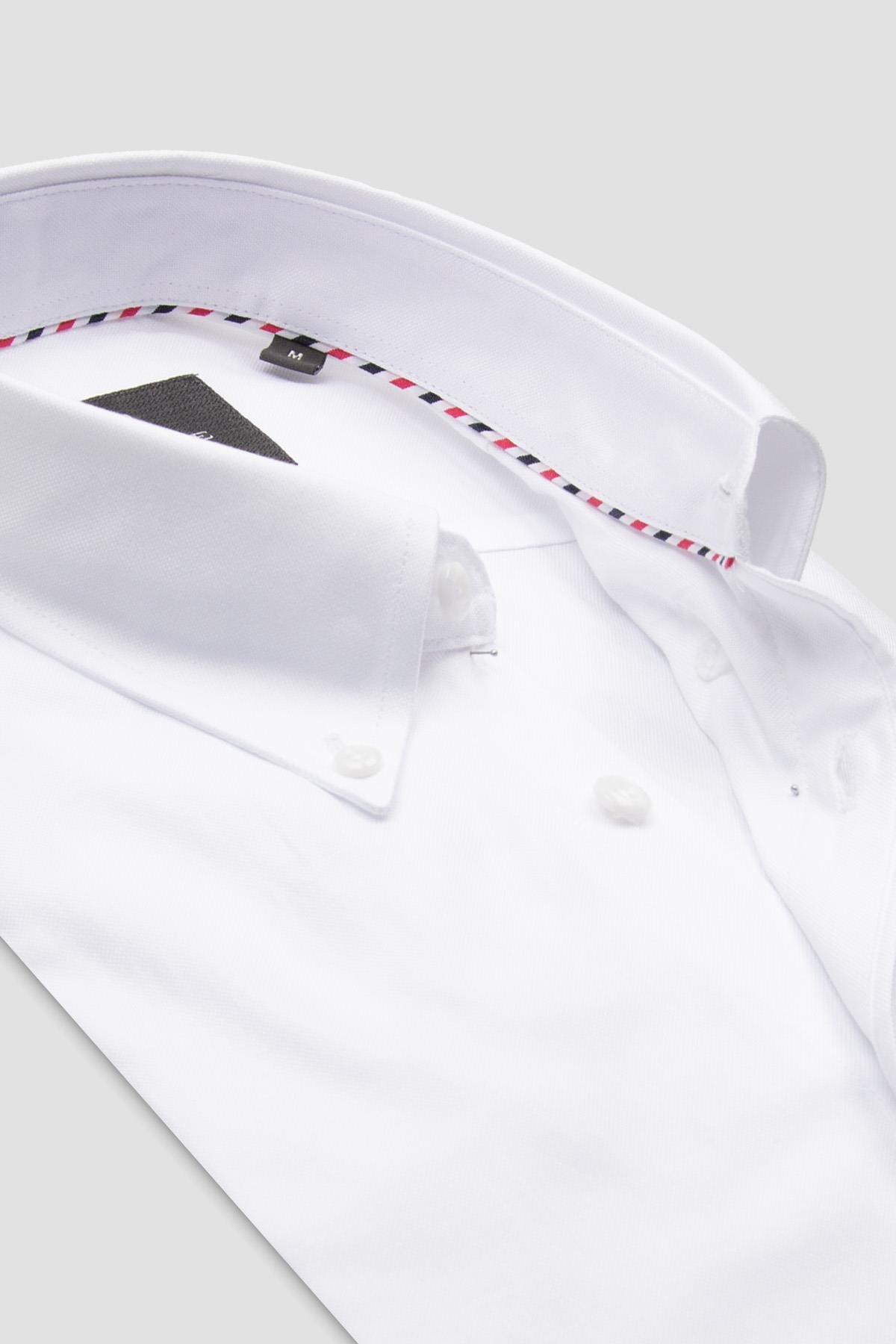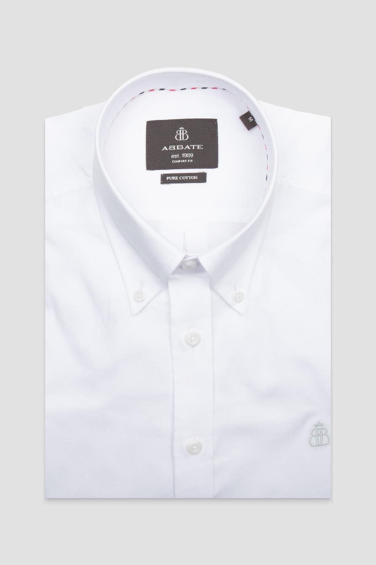 Abbate Luca Oxford Pamuklu Comfort Fit Beyaz Düğmeli Yaka Erkek Düz Gömlek (AMSH10033-020)