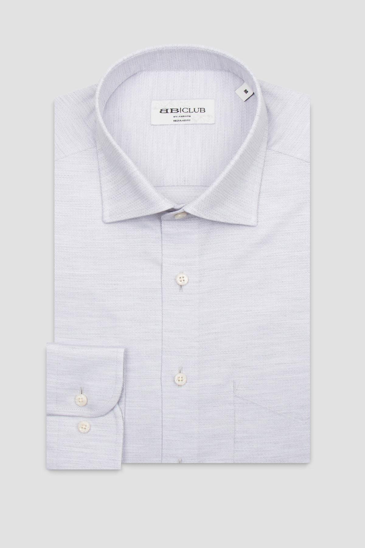 BB Club Lima Armür Pamuklu Regular Fit Açık Gri Klasik Yaka Erkek Düz Gömlek (CMSH10044-005)