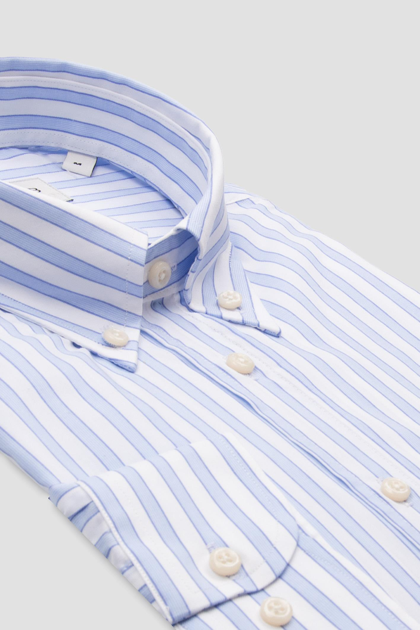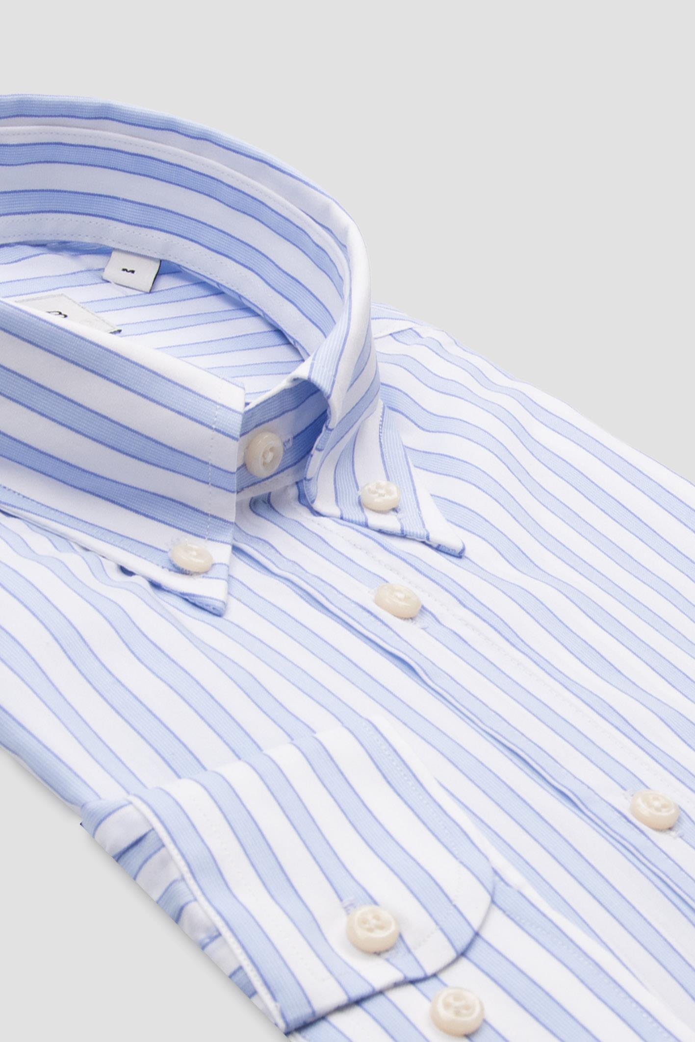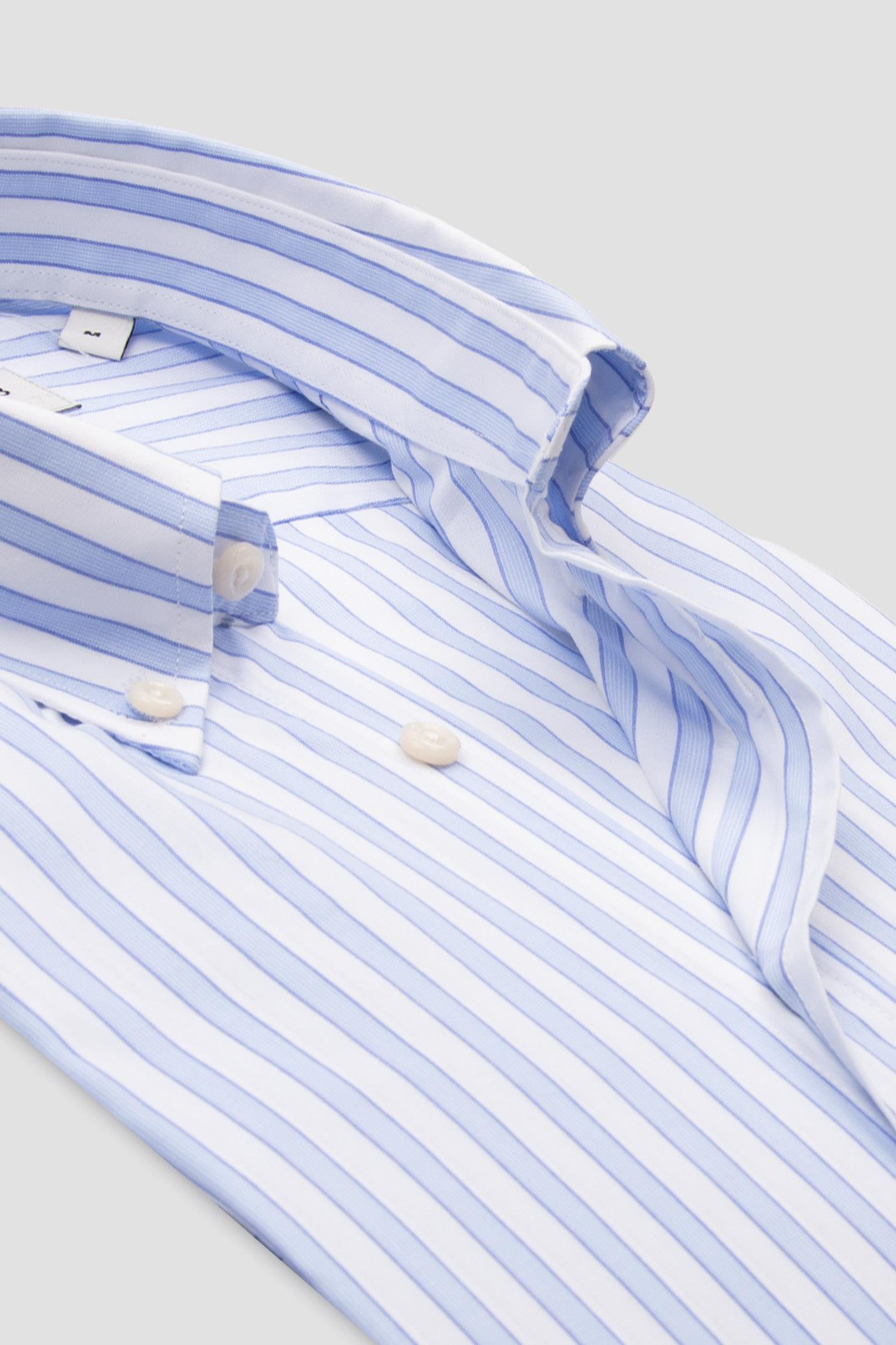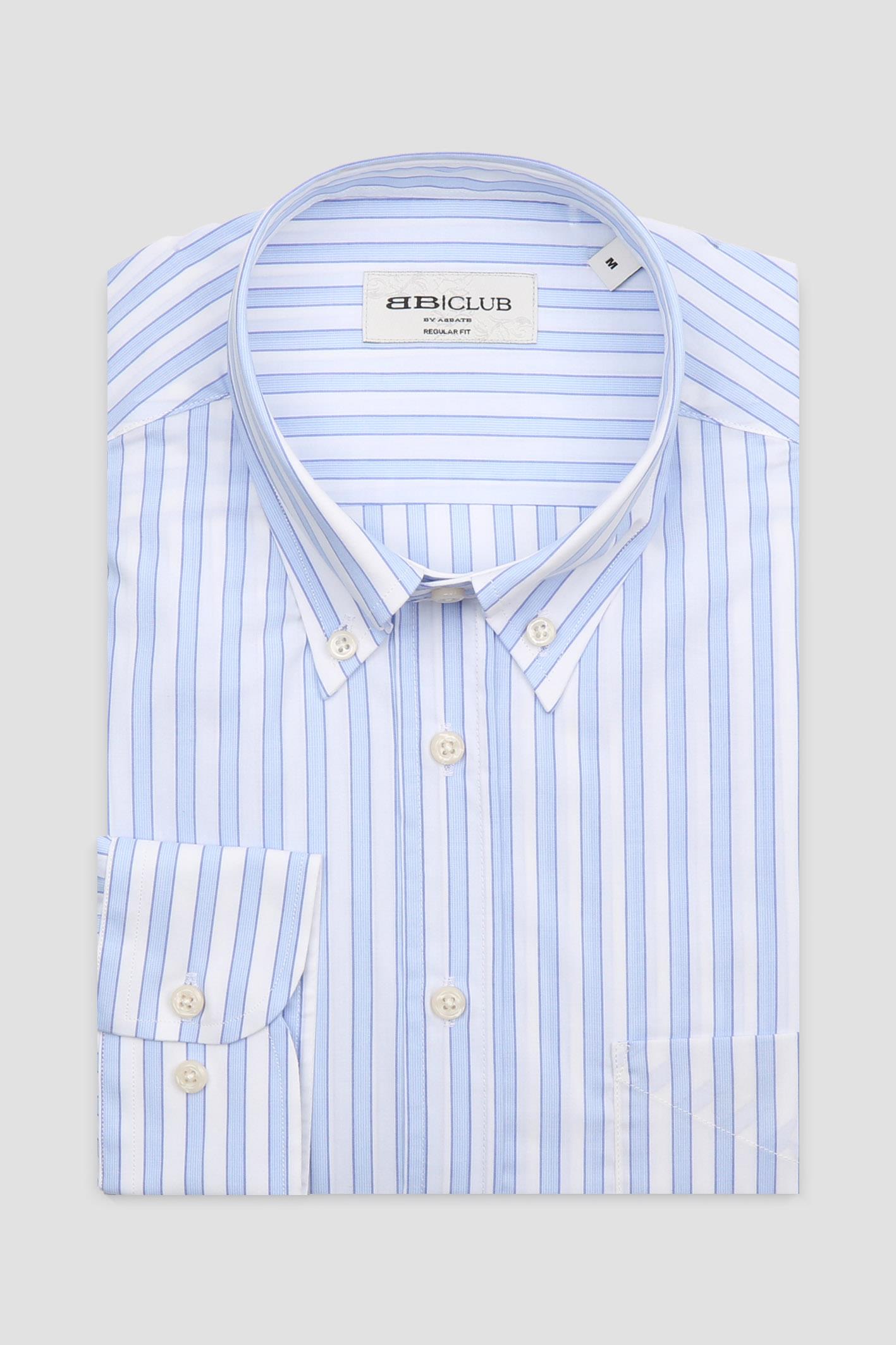 BB Club Mike Poplin Pamuklu Regular Fit Açık Mavi Düğmeli Yaka Erkek Çizgili Gömlek (CMSH10045-020)