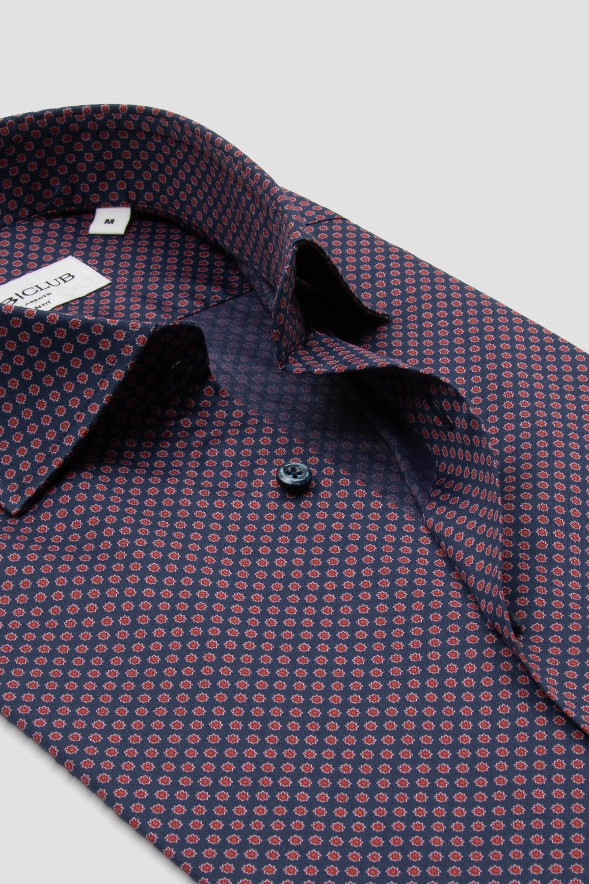 BB Club Oscar Poplin Pamuklu Slim Fit Lacivert Klasik Yaka Erkek Baskılı Gömlek (CMSH10046-008)